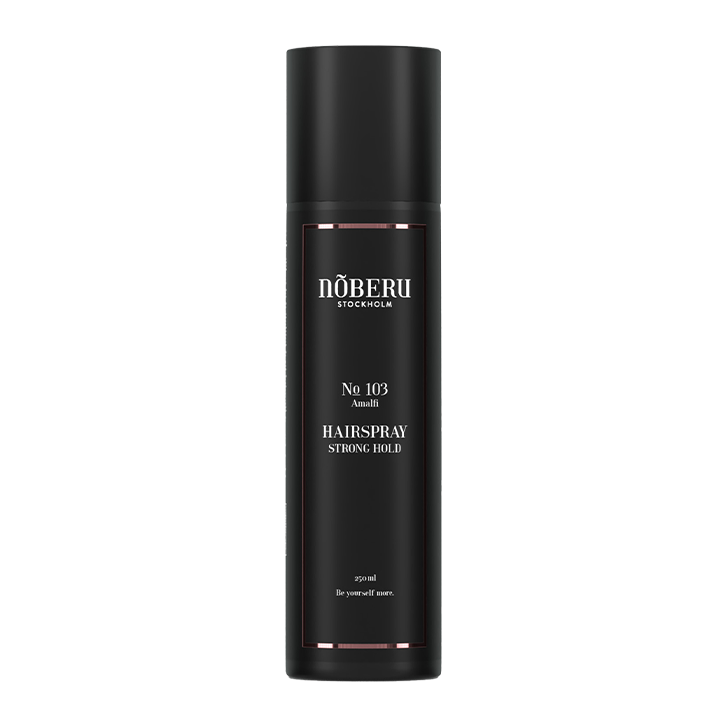 This is our Strong Hold Hairspray and it will keep your hairstyle in place all day. A hairspray (Aerosol) that fixates the hair. Our hairspray won´t leave your hair shiny or too solid, instead it gives a nice semi-matt result.
